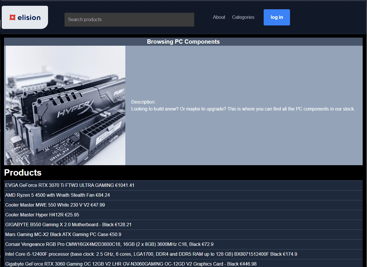 Next.JS webshop for Elision